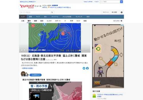道・東北太平洋側 猛ふぶきに警戒