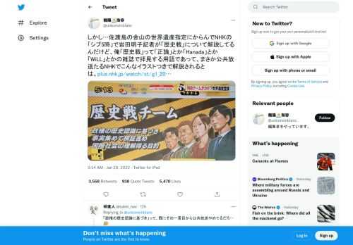龍陽⛵海容さんのツイート: "しかし…佐渡島の金山の世界遺産指定にからんでNHKの「シブ5時」で岩田明子記者が「歴史戦」について解説してるんだけど、俺「…