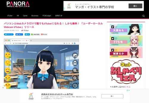 パソコンとWebカメラだけで誰でもVTuberになれる! しかも無料! 「ユーザーローカルWebcam VTuber」リリース | PANORA