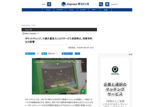 ポケットチェンジ、小銭大量投入によりサービス長期停止。両替有料化の影響 - Impress Watch