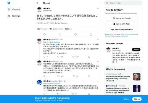 野田篤司さんのツイート: "先日、Twitterにて分をわきまえない不適切な発言をしたことをお詫び申し上げます。"