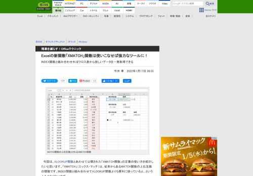 Excelの新関数「XMATCH」関数は使いこなせば強力なツールに! - 残業を減らす!Officeテクニック - 窓の杜