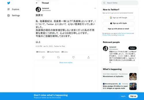 私,佐藤亜紀は,呉座勇一様(以下「呉座様」といいます。)について、Twitter 上において,心ない憶測を行っ…