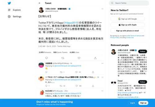 TwitterアカウントDappi(@dappi2019)の名誉毀損のツイートについて、東京地方裁判…
