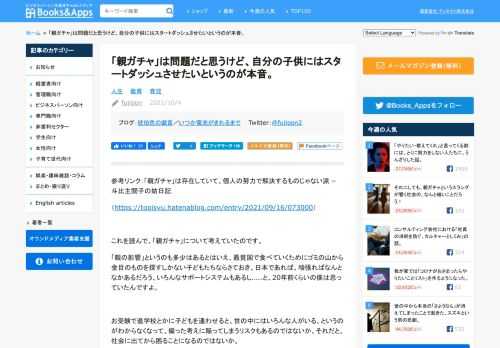 「親ガチャ」は問題だと思うけど、自分の子供にはスタートダッシュさせたいというのが本音。 | Books&Apps