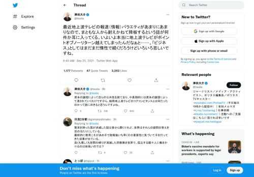 津田大介さんのツイート: "最近地上波テレビの報道(情報)バラエティがあまりにあまりなので、まともな人から耐えかねて降板するという話が何件か耳に入…