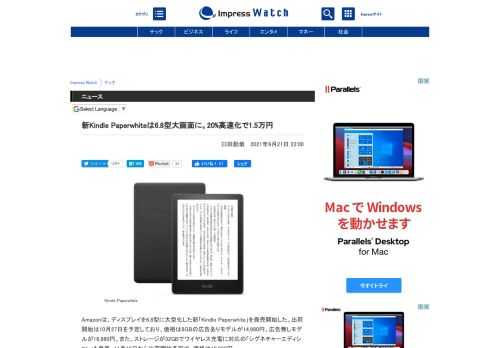 新Kindle Paperwhiteは6.8型大画面に。20%高速化で1.5万円 - Impress Watch