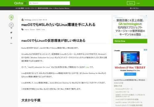 macOSでもWSLみたいなLinux環境を手に入れる - Qiita