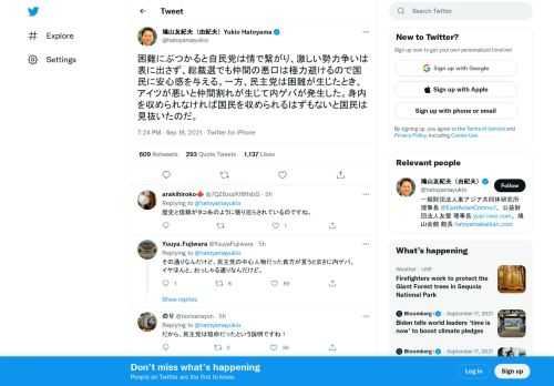 鳩山友紀夫(由紀夫)Yukio Hatoyamaさんのツイート: "困難にぶつかると自民党は情で繋がり、激しい勢力争いは表に出さず、総裁選でも仲間の悪口は極力避…