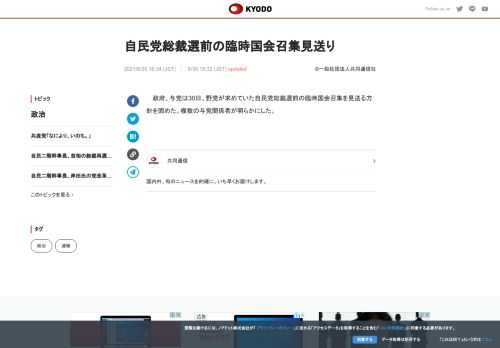 ![政府、与党は30日、野党が求めていた自民党総裁選前の臨時国会召集を見送る方針を固めた。立憲民主党は9月7~16日に臨時国会を開き、コロナ対策の予備費を積み増すための2021年度補正予算を成立させるよう求めていた。]()