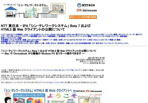 NTT 東日本 - IPA 「シン・テレワークシステム」 - 2021/08/05 HTML5 版 Web クライアントの公開について