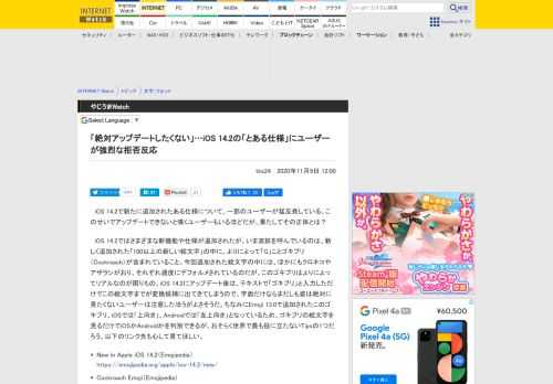 「絶対アップデートしたくない」…iOS 14.2の「とある仕様」にユーザーが強烈な拒否反応【やじうまWatch】 - INTERNET Watch
