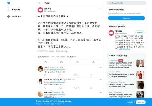 ![投票日から2日経過しても決着がついていない米大統領選。トランプ大統領はホワイトハウスで「選挙で不正が行われ、選挙は盗まれようとしている」「合法的な票を数えれば、私は楽勝だ」と演説した。]()