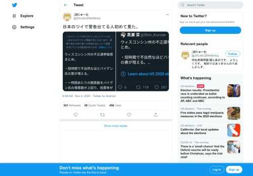 ![筆者は選挙が始まる前に、「大方バイデンが取りそうで、ラストベルトもバイデン支持が増えているが、一方でトランプがマイノリティの支持を伸ばしているので、それ次第ではトランプが勝つ可能性がある」というような話を顔見知りにしていた。 前回はトランプ当選の1年前に2014予備選の結果などからトランプの躍進を予測する記事を書いていたが、今回はトランプの勝利の目は薄いと思っていたので事前には書かなかったものの、結局選挙の勝敗が確定する以前に上記の話の「答え合わせ」が出たので、ちょっと書いておきたいと思う。 多勢としては白人=トランプで非白人=バイデンだっだが、トランプは相対的に非白人の支持を稼]()