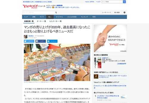 マンガの売り上げが2020年、過去最高になったことはもっと取り上げるべきニュースだ(篠田博之) - 個人 - Yahoo!ニュース