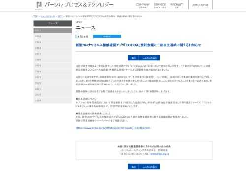 新型コロナウイルス接触確認アプリ「COCOA」受託金額の一部自主返納に関するお知らせ | ニュースリリース | パーソルプロセス&テクノロジー株式会社