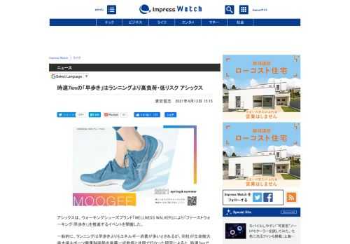 時速7kmの「早歩き」はランニングより高負荷・低リスク アシックス - Impress Watch