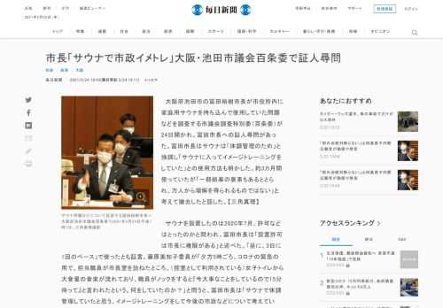 市長「サウナで市政イメトレ」大阪・池田市議会百条委で証人尋問 | 毎日新聞
