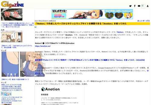 ![カレンダーやプロジェクト管理ページなどの幅広いコンテンツをサクッと作成できるネットサービス「Notion」で作成したページを、ダイレクトに転換できるというサービスが「Anotion」です。Anotionは「発信までのハードルがとにかく低いブログサービス」「ドキュメントの編集から公開までのステップがとにかく楽なサービス」を目指したとのことなので、実際に試してみました。]()