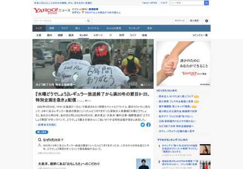水どう終了20年 特別企画配信へ - Yahoo!ニュース