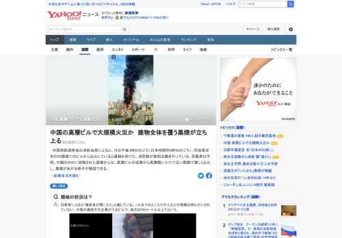 中国 高層ビルで大規模火災か - Yahoo!ニュース