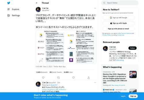 じゅじゅさんのツイート: "プログラミング、データサイエンス・統計学関連はネット上にで超優良なテキストが"無料"で公開されており、本当に良…