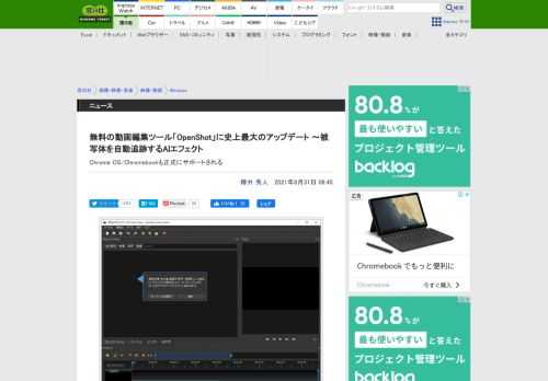 無料の動画編集ツール「OpenShot」に史上最大のアップデート ~被写体を自動追跡するAIエフェクト - 窓の杜