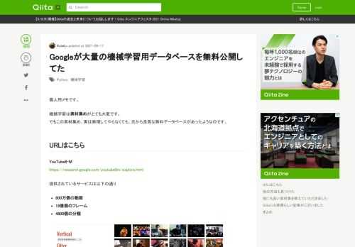 Googleが大量の機械学習用データベースを無料公開してた - Qiita