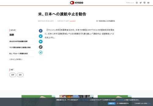 米、日本への渡航中止を勧告 | 共同通信