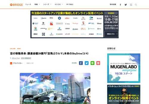 空の移動革命:調達金額39億円「空飛ぶクルマ」本命のSkyDrive(3/4) – BRIDGE(ブリッジ)