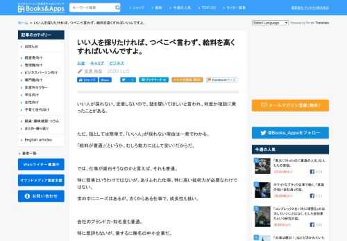 いい人を採りたければ、つべこべ言わず、給料を高くすればいいんですよ。 | Books&Apps