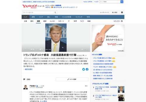 トランプ大統領 コロナ陽性 - Yahoo!ニュース