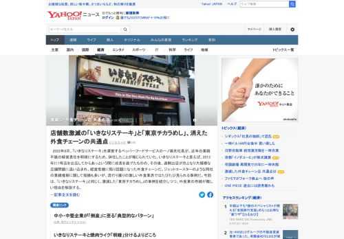 激減した外食チェーン店 共通点は - Yahoo!ニュース